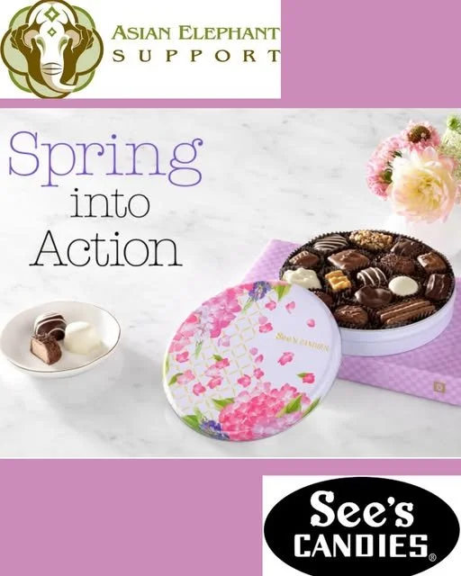 We’ve partnered with See’s Candies for a late Spring fundraising campaign - just in time for Mother’s Day! Every purchase supports Asian Elephant Support and our mission to protect and conserve Asian Elephants! This fundraiser runs through April 17th so don’t miss out!