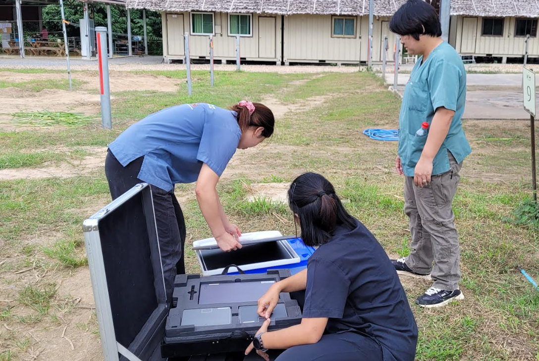 CMU Vets setting up ultrasound equipment at The Bush Camp